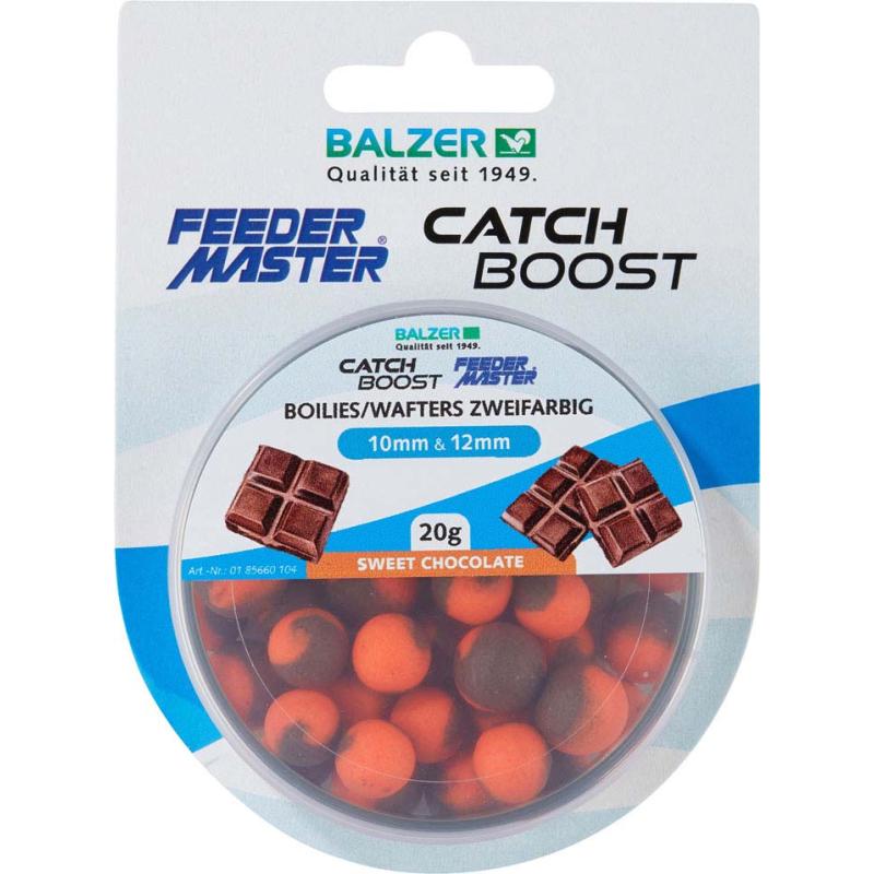 Zweifarbige Boilies (Wafter) 10mm und 12mm gemischt. Wafter sind speziell Angelköder, die im Wasser nahezu schwerelos sind. Sie sind weder zu schwer, noch zu leicht und schweben daher leicht über dem Gewässergrund oder werden nur durch das Gewicht des Hakens am Boden gehalten. Diese Eigenschaft macht sie für Fische besonders attraktiv, da sie den Köder leichter aufnehmen können, ohne viel Widerstand zu spüren. Die Boilies sind leicht gummiartig, geschmeidig und lassen sich leicht auf den Speer am Haar aufspießen. Auch bei weiten Würfen bleiben sie sicher am Speer. Die Boilies werden schonend gedämpft, wodurch die hochwertigen Inhaltsstoffe wie z.B. Aminosäuren vollständig erhalten bleiben.