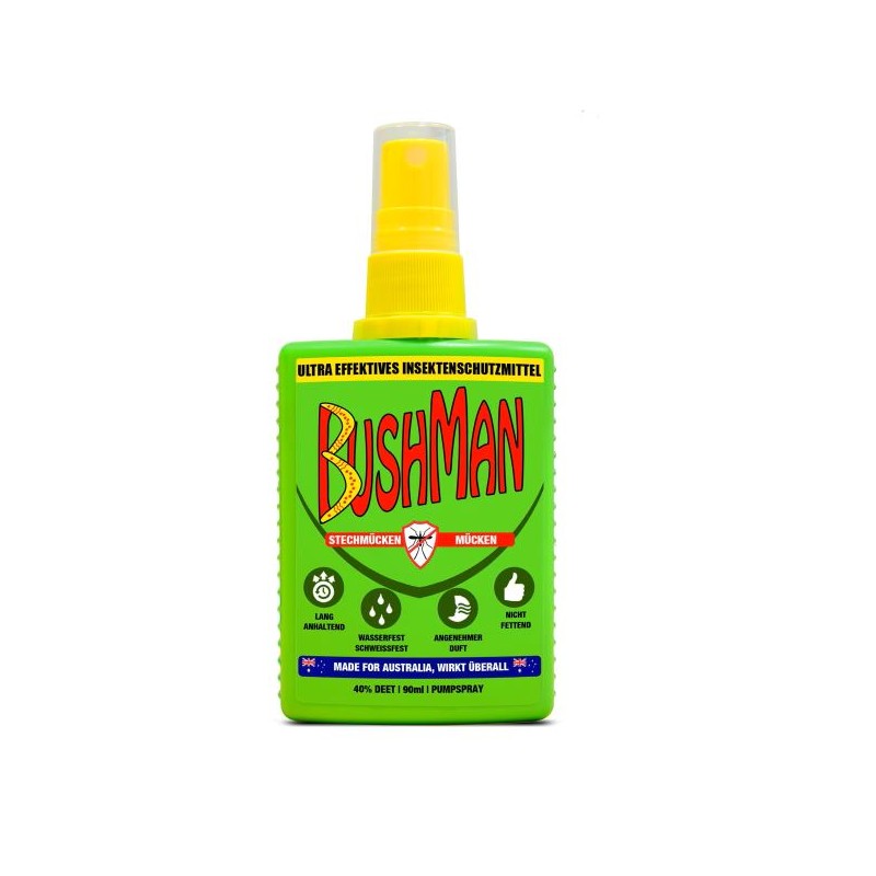 Seit 1990 schützt dieses Insektenschutzmittel Outdoor-Profis, Sportbegeisterte und Überseereisende vor blutsuchenden, krankheitsträchtigen Insekten. Mit einem Schutz von bis zu acht Stunden aus einer einzigen Anwendung hebt sich Bushman DEET 40 % als das am längsten anhaltende und nicht fettende Insektenschutzmittel ab. Es fühlt sich gut an und hat einen angenehmen Geruch. Sowohl für tropische Bestimmungen (Malaria, Dengue und Gelbfieber) als auch für europäische Gebiete geeignet. DEET ist die Abkürzung für N,N-Diethyl-m-toluamid (oder N, N-Diethyl-3-methylbenzamid). Wirkt gegen stechende Insekten, aber auch gegen Zecken. Das Mittel wird auf die unbedeckte Haut aufgetragen.