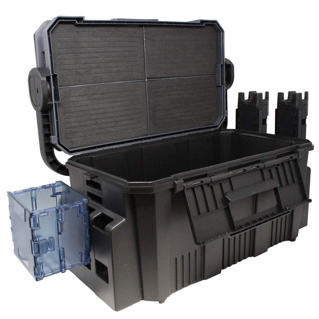 Die FTM Omura Box groß ist die perfekte Lösung für Spinnfischer und UL-Angler, die eine stabile und vielseitig einsetzbare Aufbewahrungsbox für den Angelausflug suchen. Gefertigt aus widerstandsfähigem Kunststoff, bietet die Omura Box ein individuell einteilbares Hauptfach, ideal für Köderboxen, Zangen und anderes wichtiges Zubehör. Im Deckel befindet sich zusätzlicher Stauraum, ebenfalls frei einteilbar, sowie eine praktische Schaumstoffeinlage zum sicheren Einhängen von Spoons oder Tungstenhaken. Dank der mitgelieferten Rutenhalter, einem Getränkehalter und einem bequemen Tragegurt ist die Box nicht nur funktional, sondern auch perfekt für den mobilen Einsatz am Forellensee. Optional lässt sich die Box durch zusätzliche Halter erweitern – ein Muss für jeden passionierten Angler!