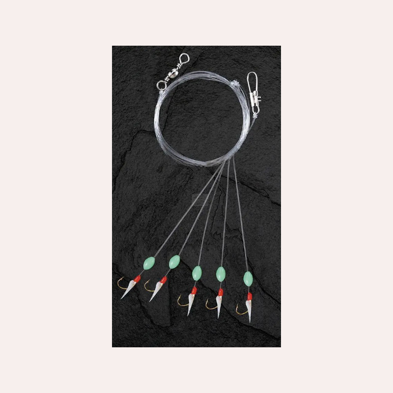 Die Heringsvorfächer aus dem Hause Paladin werden aus echter Fischhaut gefertigt, verfügen über Fluo-Leuchtperlen und haben fünf Haken in unterschiedlichen Größen.