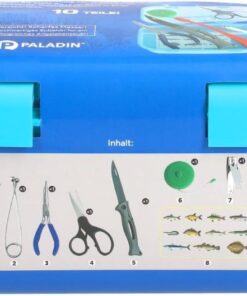 Die Paladin Transportbox mit Werkzeug ist der ideale Begleiter für alle Angler, die Ordnung, Funktionalität und zuverlässiges Zubehör in einem kompakten Set suchen! Ob am See, Fluss oder Meer – mit diesem Set bist Du bestens ausgerüstet für nahezu jede Situation am Wasser! Alles in einer praktischen Box verstaut – leicht zu transportieren, schnell griffbereit und perfekt organisiert. Mit der Paladin Werkzeugbox hast du die wichtigsten Helfer beim Angeln immer dabei – ob für das Messen, Schneiden oder den schnellen Gerätewechsel. Ein kompaktes Set, das in keiner Angelausrüstung fehlen sollte